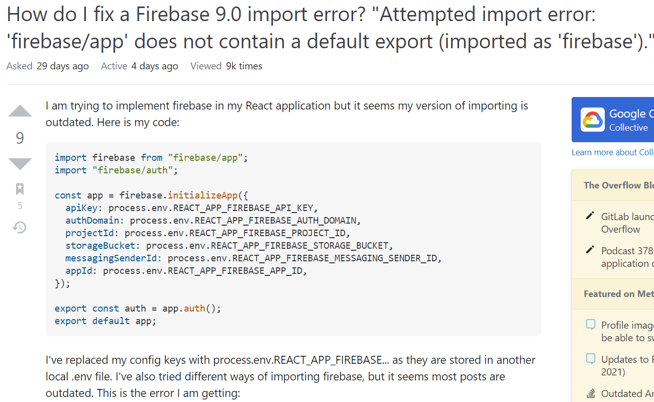 이 전에도 firebase파일에 import하는 과정에서 오류발생해서 그거 고치느라 눈물을 쏟았는데